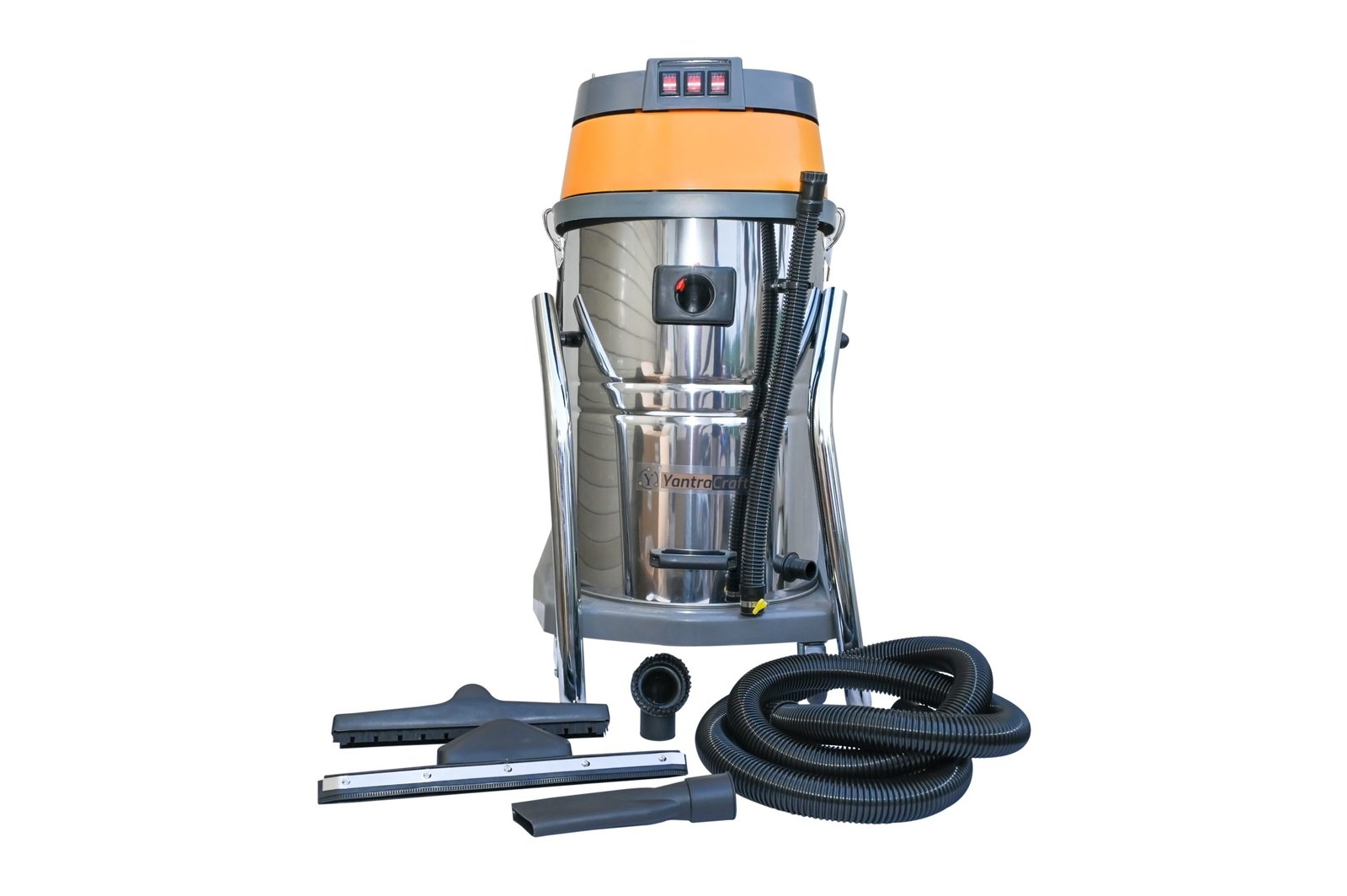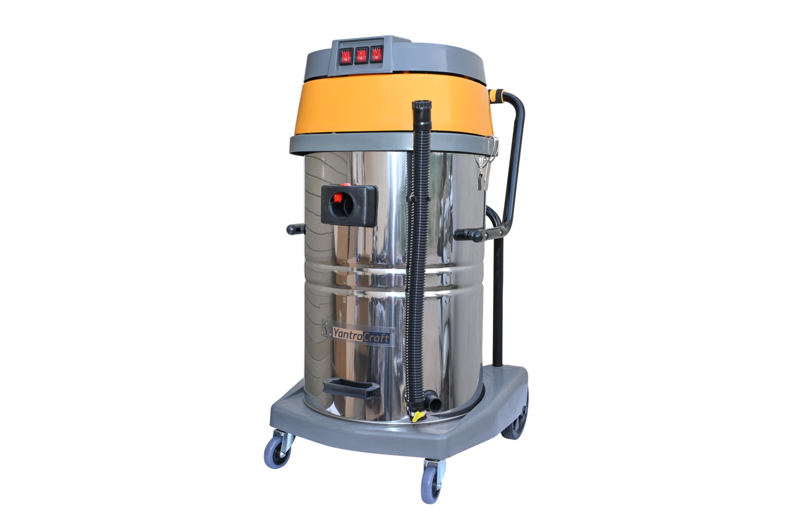 The YantraCraft 60L Wet & Dry Vacuum Cleaner (Model No: YTC-60L-WDVC-CU) is a powerful, high-capacity cleaning system designed for rigorous industrial and commercial cleaning applications. Powered by a robust 3600W double motor with 100% copper wiring, this vacuum cleaner provides exceptional suction and durability, handling large-scale cleaning with ease. With an 60-liter capacity, it efficiently manages both wet and dry debris, making it versatile and ideal for various industrial settings.